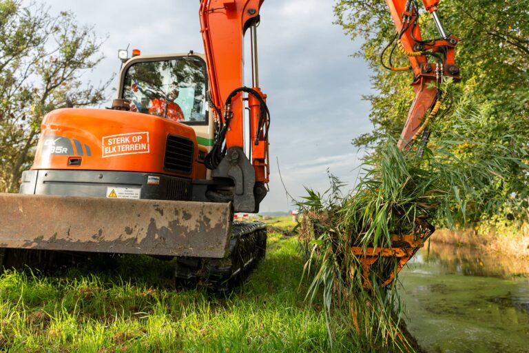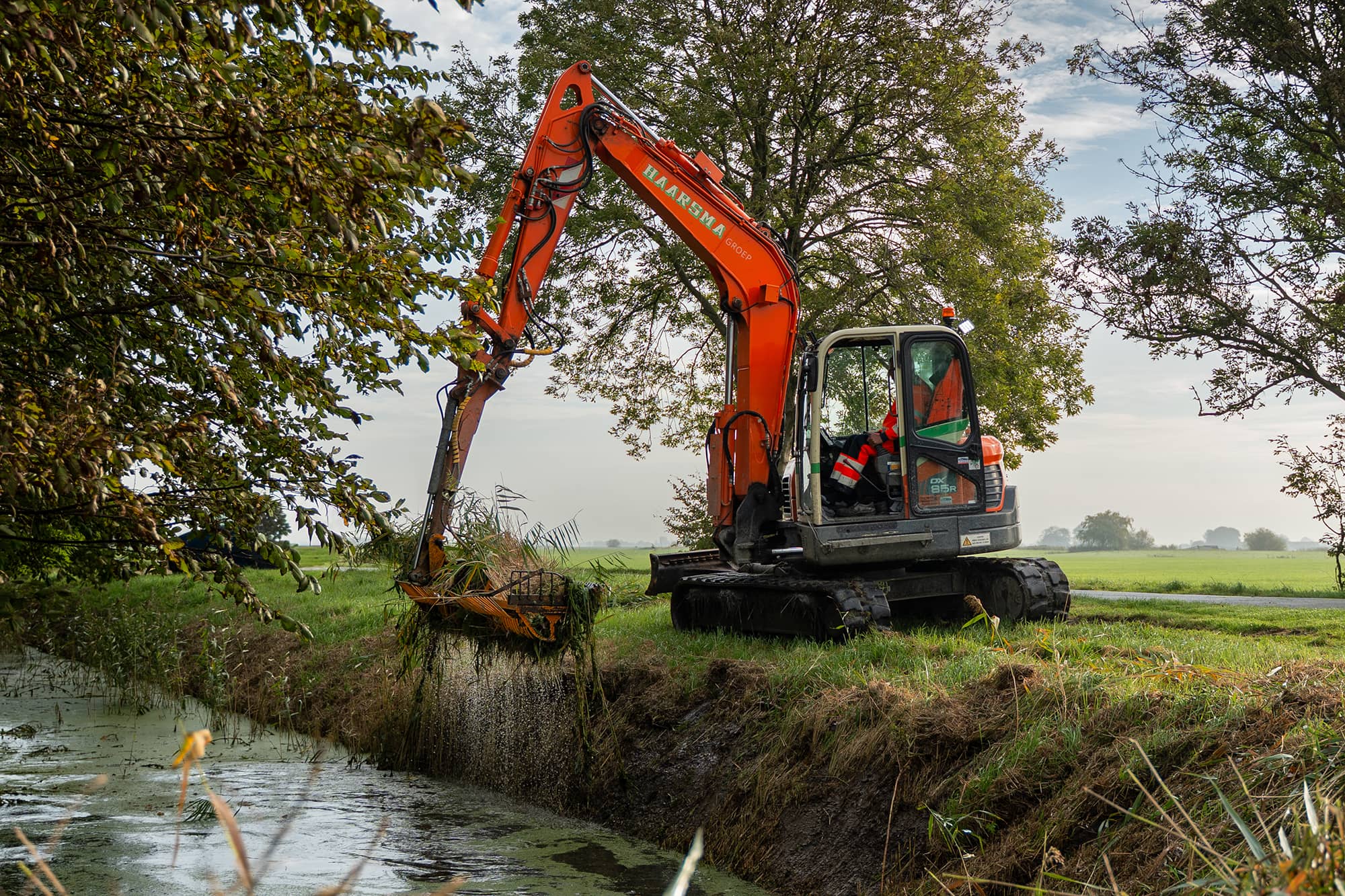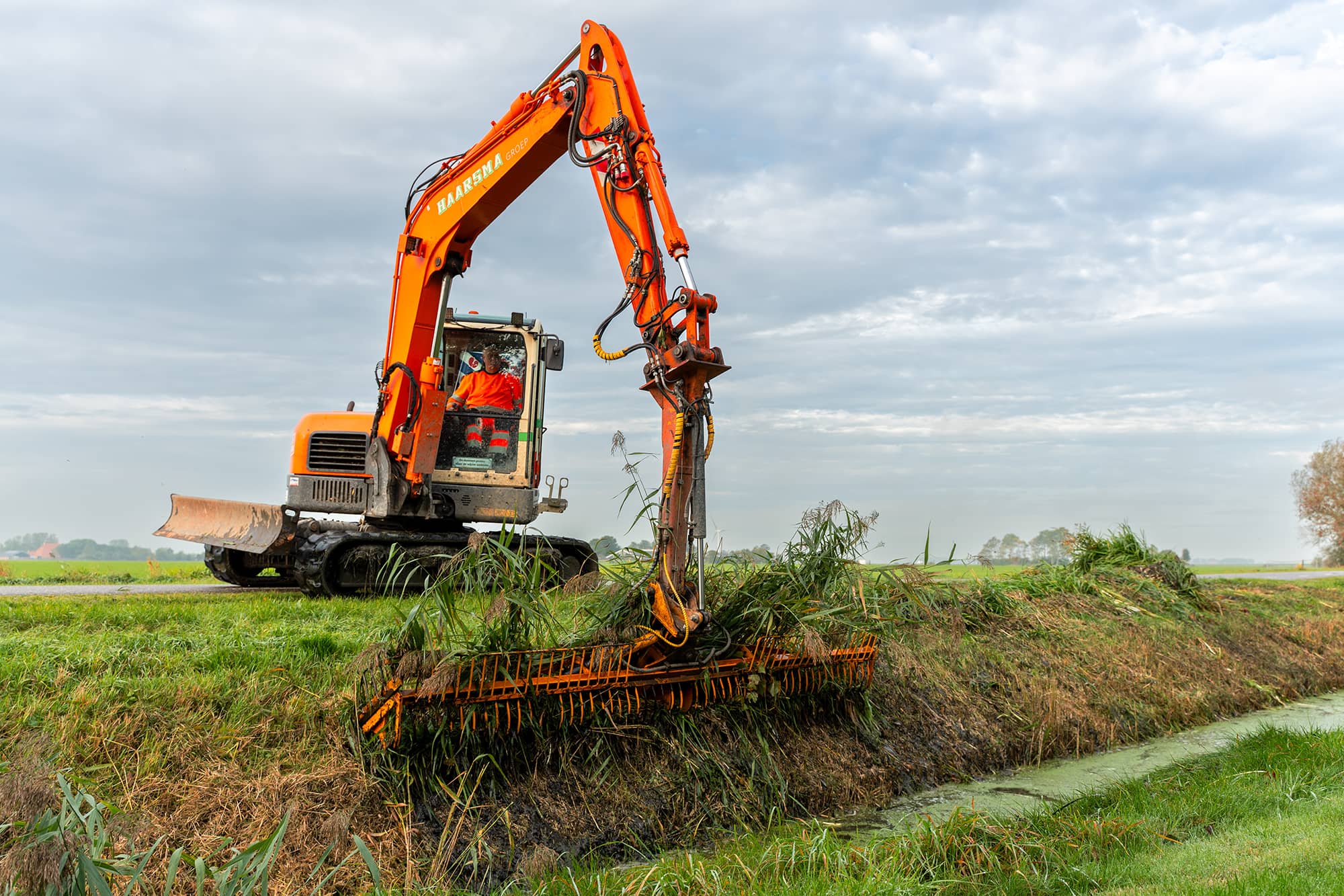 Jaarlijks voeren we het berm- en slootonderhoud uit voor gemeente Súdwest-Fryslân. In rayon West 1 zijn wij met oog voor efficiëntie, bereikbaarheid en natuur elk najaar aan het werk. Met behulp van compacte en wendbare midi-kranen worden de sloten schoongemaakt en bermen gemaaid. Lees ook het verhaal van onze collega Sjaak, hij verzorgt het berm en slootonderhoud >